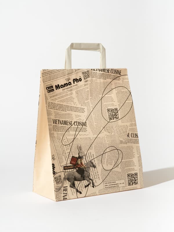 Our flat handle bags are made using 80 GSM paper, available in white or kraft options. They are printed using Pantone U colours with full ink coverage. Perfect for showcasing your products and turning every customer into a walking advertisement for your brand.