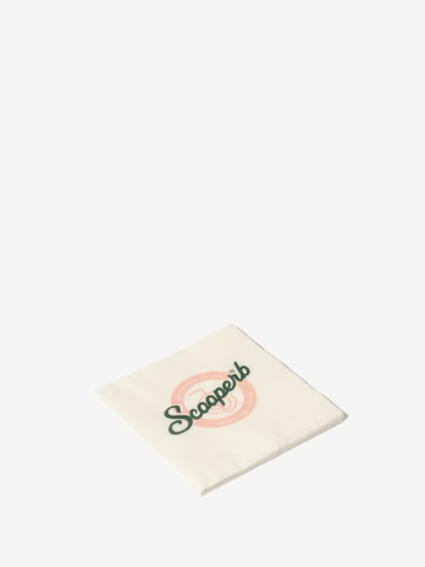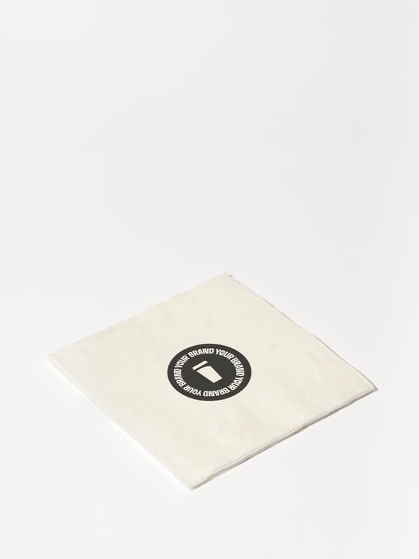 Our napkins are available in three sizes: Cocktail (24x24cm), Medium (33x33cm), and Large (40x40cm). They are made from 2-ply material in white or recyclable kraft options. Printed using Pantone U colours. Perfect for complementing your drinks and food service while reinforcing your brand.
